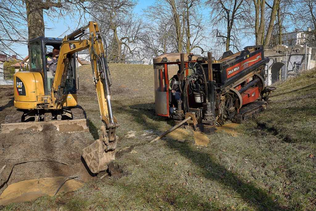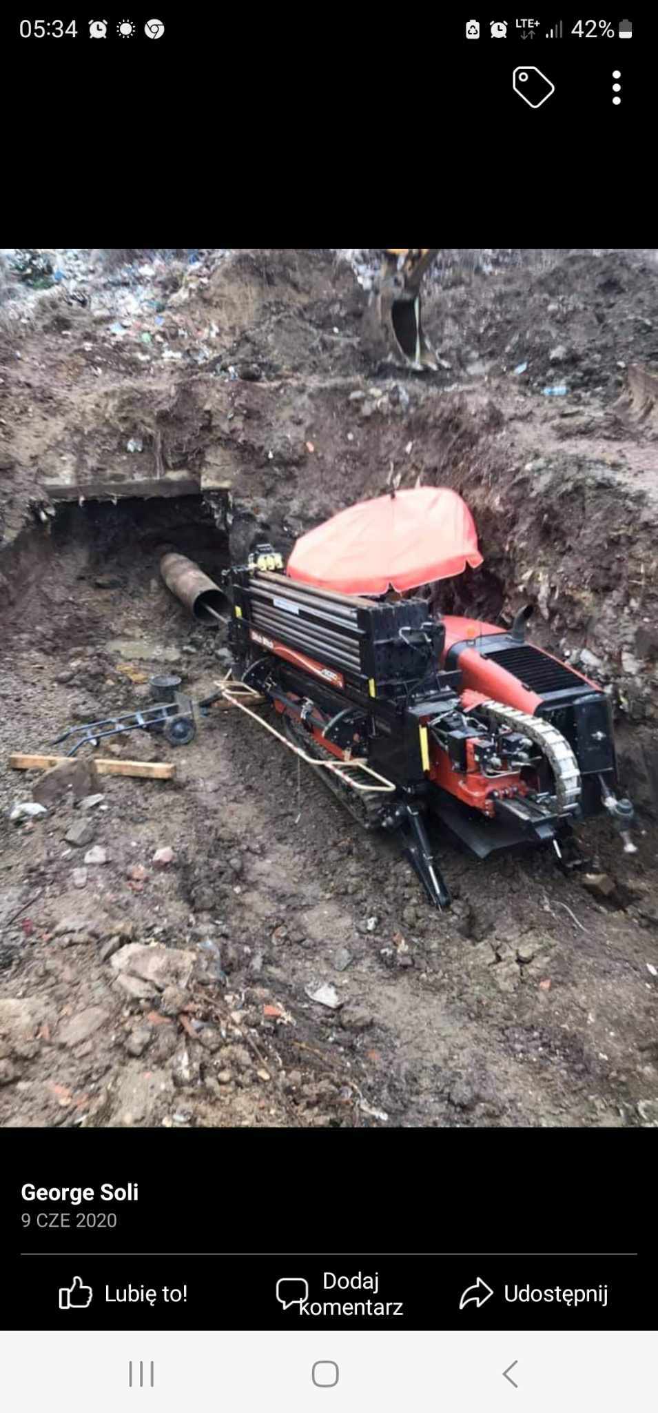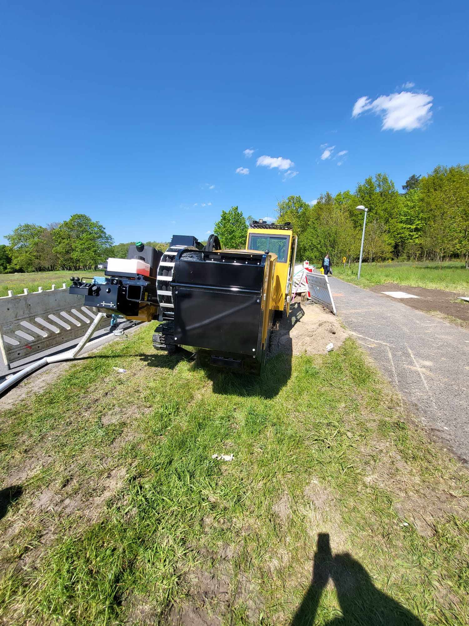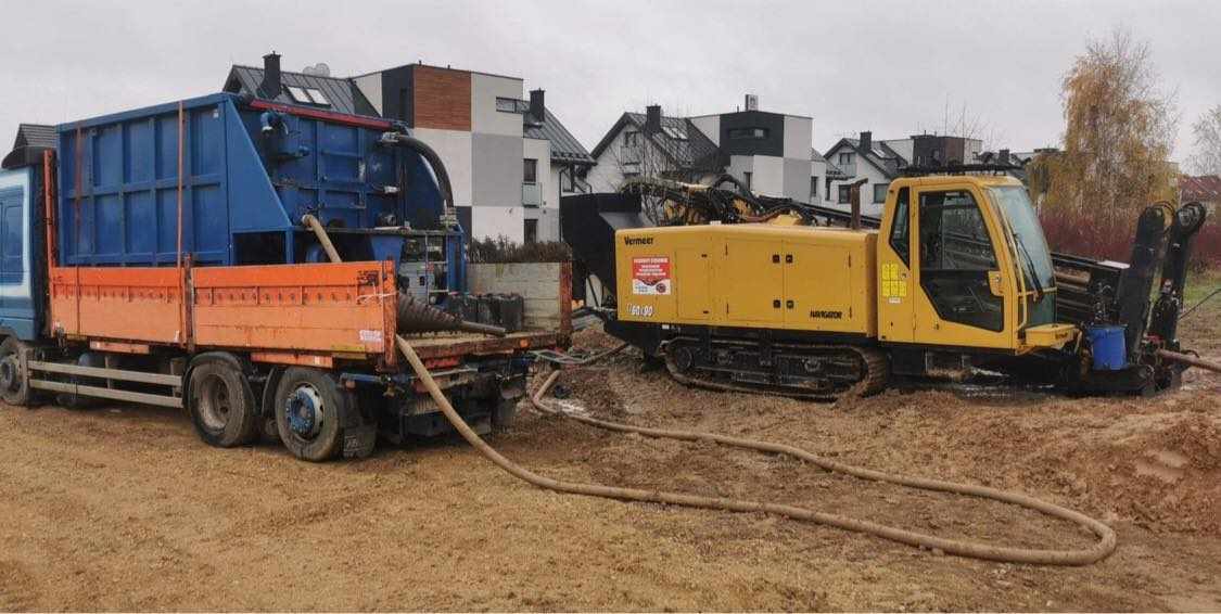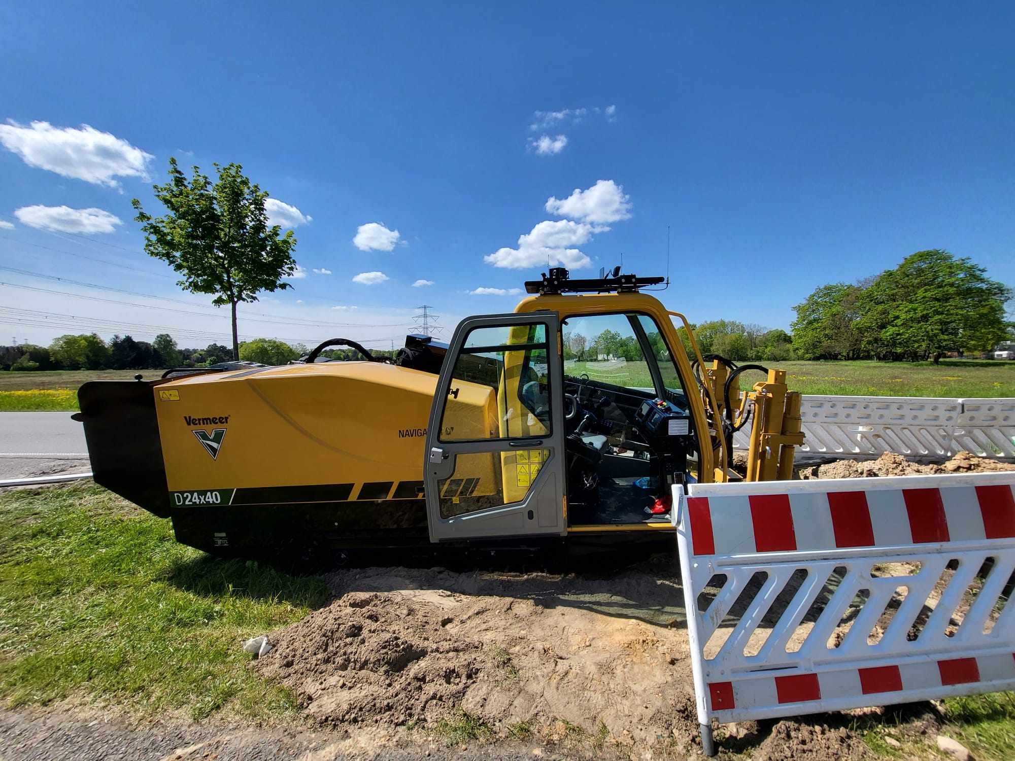 Wir verfügen derzeit über zwei Vermeer D36X50 II und D24X40 S3 lenkbare Bohrmaschinen mit einer starken Zug- und Schubkraft von 16 bzw. 13 Tonnen. Jede Maschine kann 150 mb bohren, die Länge kann von Fall zu Fall erhöht werden, und wir verfügen über die neuesten Ortungssysteme, einschließlich DCI F5+. Unsere Bohrteams sind mit Maschinen und Geräten ausgestattet, die ein umfassendes Bohren ermöglichen, d.h. Minibagger, LKWs zur Entsorgung des Aushubs (Kipper), Fässer zum Abpumpen von Bohrschlamm (Bentonit) sowie Mitarbeiter mit langjähriger Erfahrung im Bau von Glasfasernetzen.